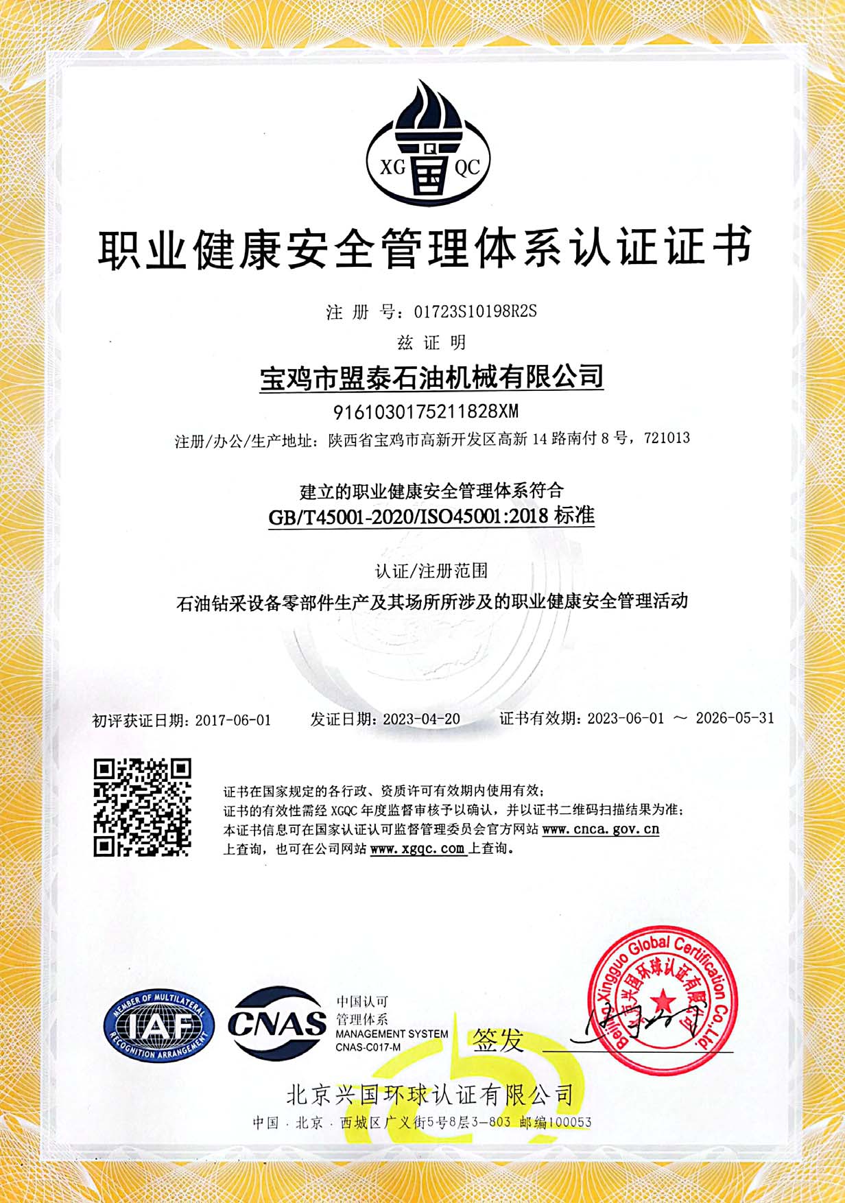 質量管理體系認證證書